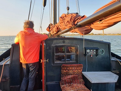 Maart 2021Een dag zonder wind en een dag met veel wind, via Staveren, Amsterdam naar Haarlem. In Haarlem liggen we naast de molen en er wordt een nieuw kunstwerk geplaatst.